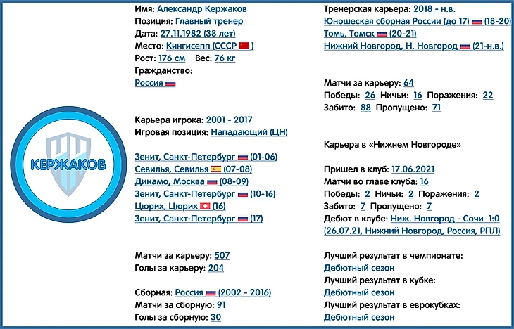 Для самого Александра этот опыт будет первым на посту главного тренера команды Премьер-Лиги, однако до этого Кержаков провел один сезон в качестве наставника томской «Томи» (принял команду когда она была на последнем, 22-м месте в ФНЛ, но хоть и поднялся с ней по итогам сезона на 18-е, от вылета команду спасло только т о, что финишировавший выше томской команды футбольный клуб «Чайка» по решению КДК РФС переведён из ФНЛ в ПФЛ).