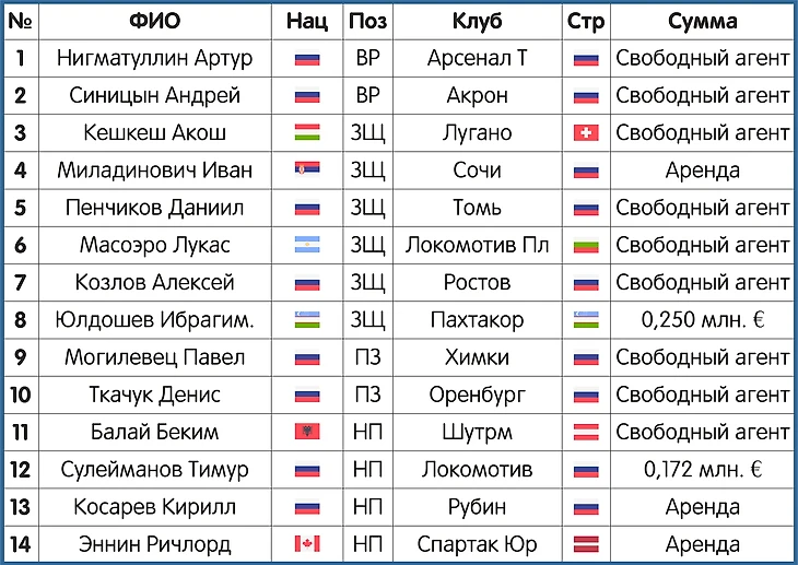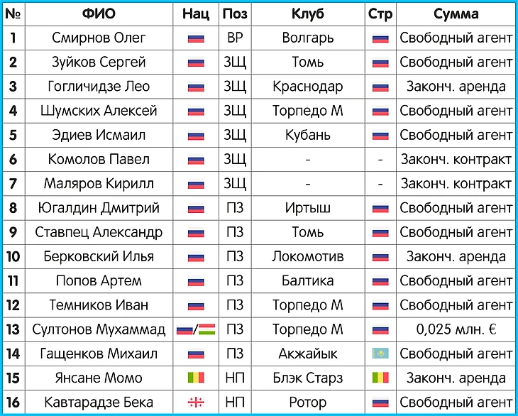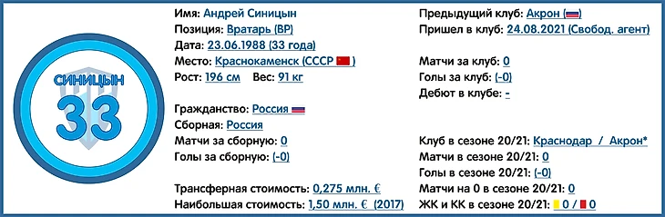 Под конец трансферного окна команда подписала ветерана Андрея Синицына, известного по выступлениям за «Краснодар», так что теперь конкуренция в этой линии еще более острая.