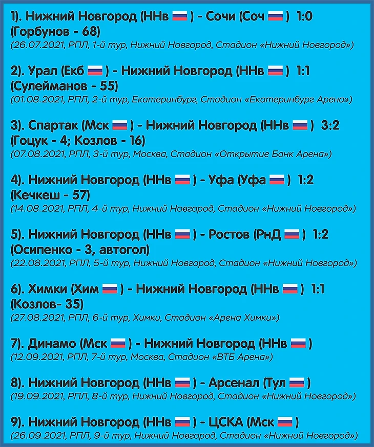Статистическое превью ФК «Нижний Новгород» от блога «Топ-7 Матчей Недели»
