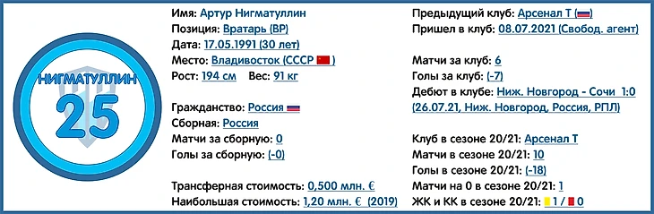 В 6-ти стартовых турах Нигматуллин пропустил всего 7 голов и пока что оснований для перестановок в этой линии у тренерского штаба быть не должно.