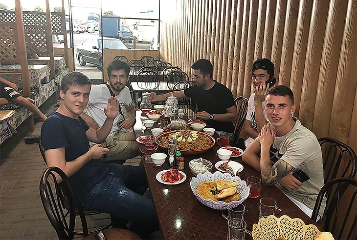 «Когда он приехал, познакомился с местными узбеками, ему порекомендовали это место, – рассказывал в интервью Sports.ru Никита Кириленко из медиакоманды «Ростова». – Он как-то позвал на плов, заказал, поехали. Если бы не Эльдор, я бы вряд ли туда зашел – место такое себе. Но, конечно, атмосферно: есть столы, а есть топчаны, где прямо с ногами сидишь. Все говорят на узбекском.