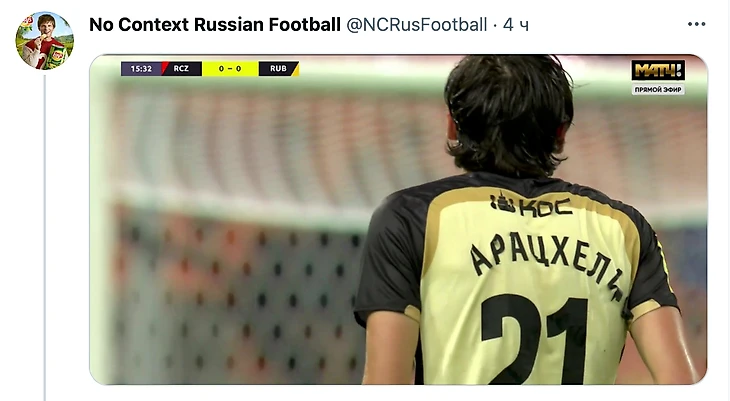 По ходу тайма из 11 букв фамилии Кварацхелия осталось только 4, а «Рубин» здорово сориентировался и написал изящный твит.