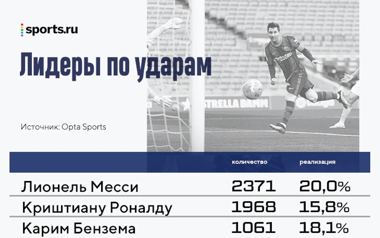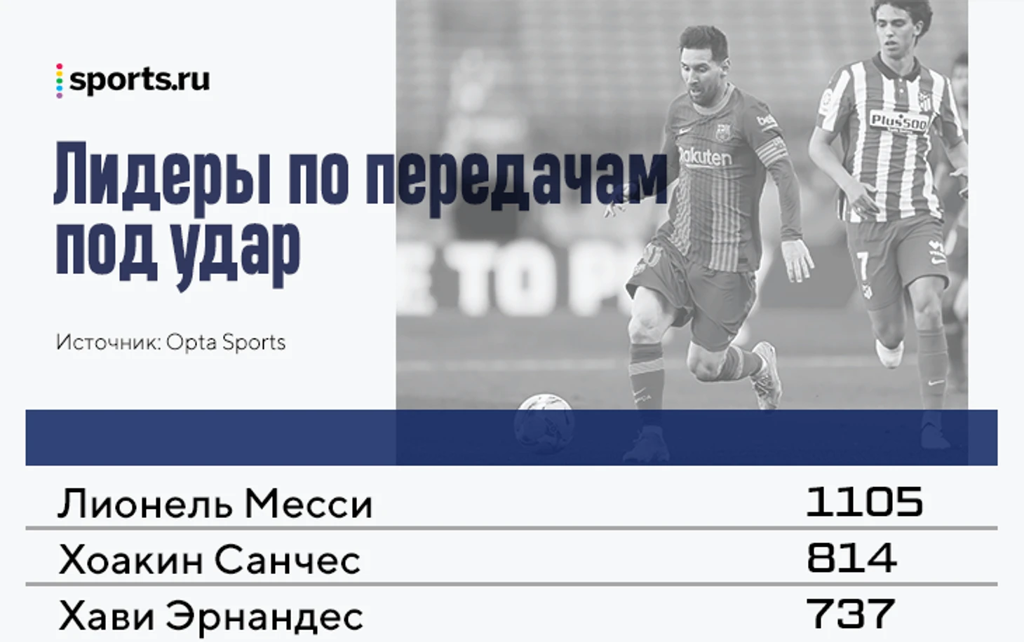 Мы собрали топ-3 по количеству ударов, ассистов, обводок, созданных моментов и другим показателям за все время Месси в Ла Лиге. Везде гигаотрыв – кажется, даже больший, чем вы думали.