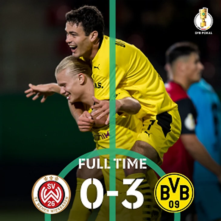 Клуб из третьей лиги держался вполне себе неплохо до середины первого тайма, но долго напору Эрлинга Холанда сопротивляться они все же не могли и за какие-то несколько минут пропустили парочку голов: в первый раз неплохо ассистировал Марко Ройс, а во второй раз норвежец справился почти со всем сам — бежал один на один с вратарем, а тот все-таки его зацепил и дал повод назначить одиннадцатиметровый, с которым нападающий «шмелей» вполне уверенно справился. Ну а в дебюте второго тайма у Эрлинга Холанда с подачи Рейны появился отличный повод после матча захватить с собой на память мяч.