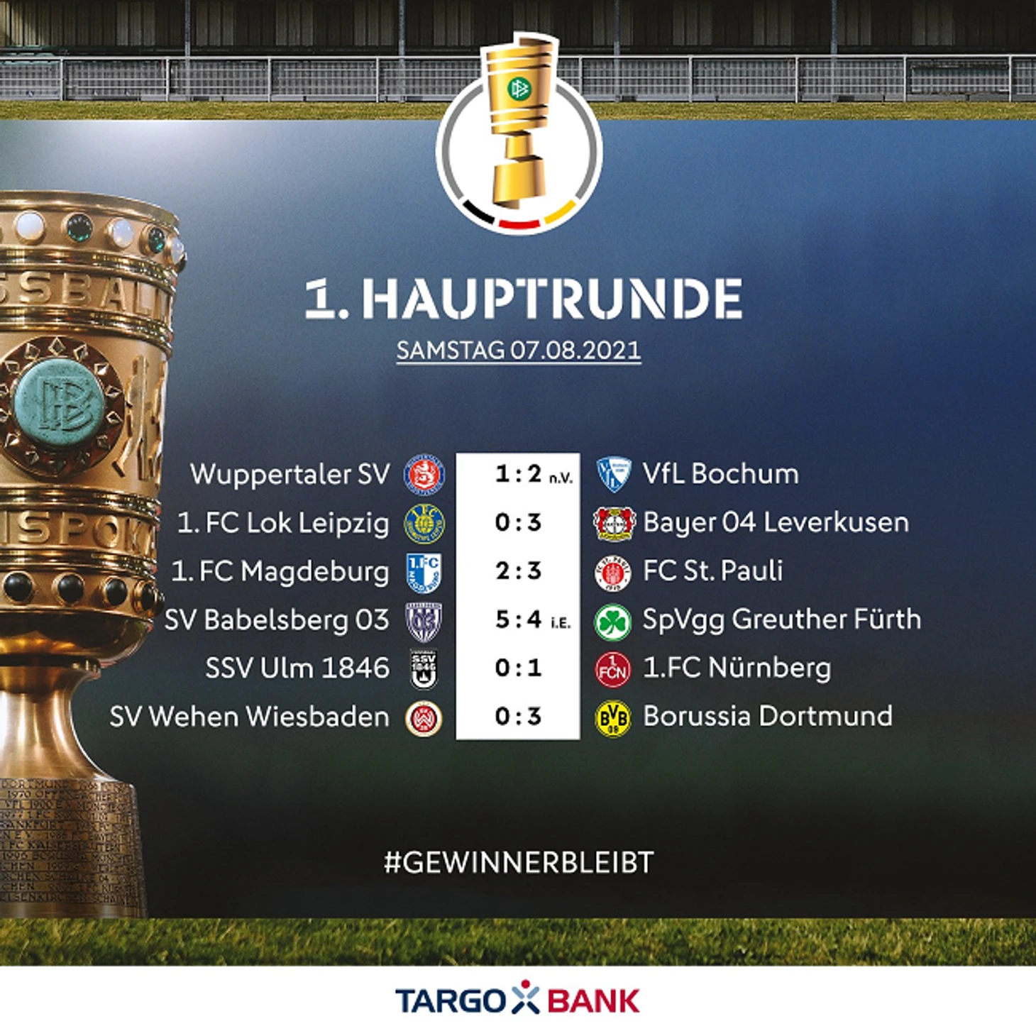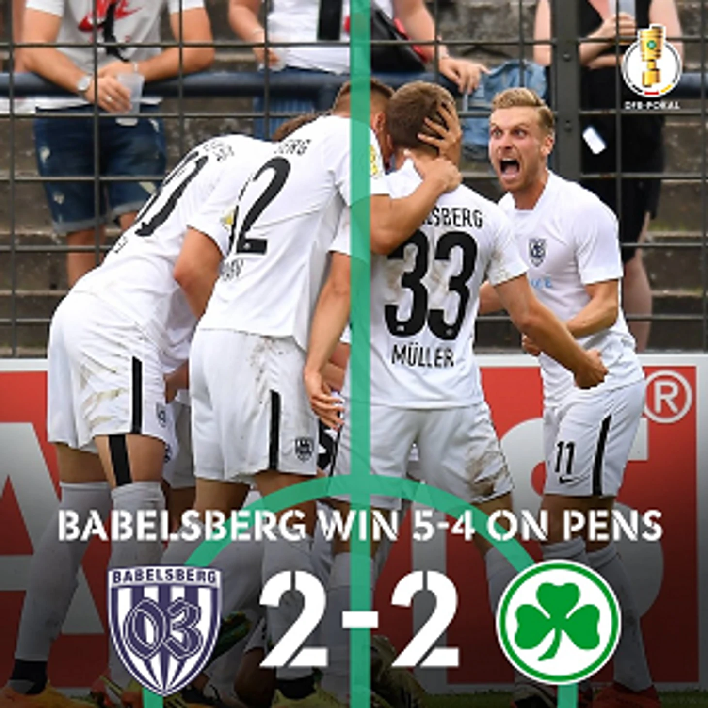 Субботний матч в Потсдаме вышел весьма драматичным и зрелищным. Несмотря на прогнозы, местный «Бабельсберг» сумел дать бой новоиспеченному участнику высшего дивизиона чемпионата Германии — «Гройтер Фюрту». Гости доминировали весь матч, в дополнительное время подопечным Ляйтля и вовсе удалось выключить соперника из игры. При счёте 2:2 к концу второго тайма «Бабельсберг» засел в глубокую оборону, а «трилистники» пытались найти лазейку в прочных рядах защиты соперника.