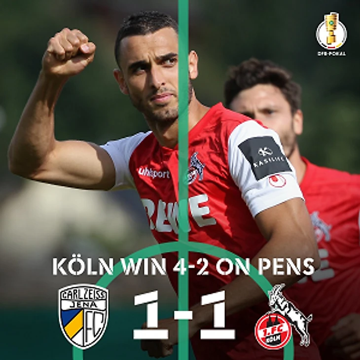 Команда Дирка Кунерта неудачно начала внутренний чемпионат и с этим нужно было что-то делать. Его подопечные провели уже три тура и за этот период сумели набрать всего одно очко, то есть показали один из самых худших результатов в лиге. Игроки «Карл Цейсс» прекрасно понимали, что матч против «Кельна» неплохая возможность заставить футбольный мир заговорить о себе, но сначала нужно было оформить сенсацию. И вот на пятой минуте реализация не подвела Вольфрама, который открыл счет в матче и на долгие 60 с лишним минут заставил фанатов гостей рвать на себе волосы. На 69-й минуте спасителем «Кельна» выступил Скири. До конца основного времени и за все дополнительное время победителя команды выявить так и не смогли, однако в серии пенальти более удачливыми оказались гости и не без труда вырвали победу.
