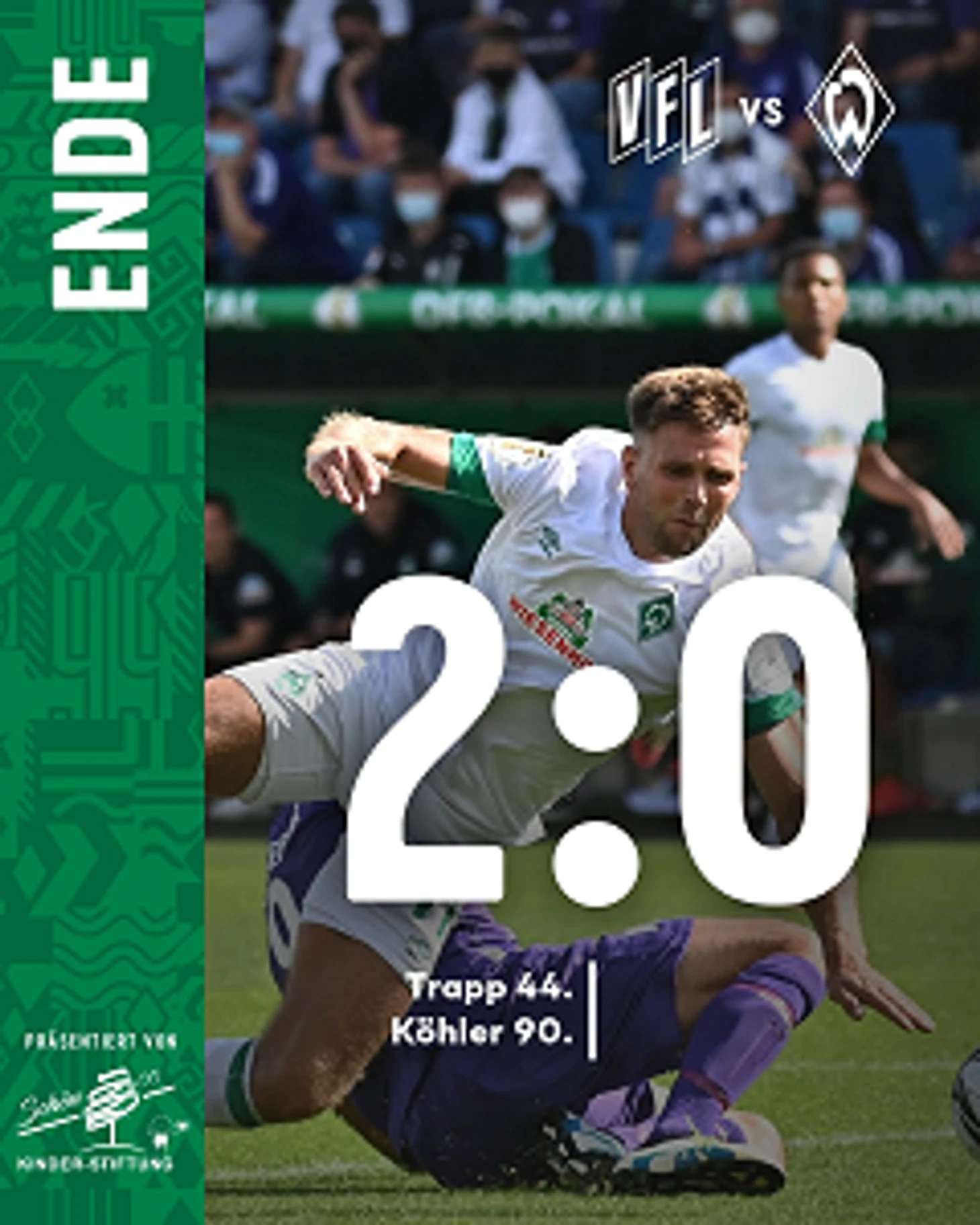 Бесславно вылетевший весной из первой Бундеслиги «Вердер» поехал в первом круге к соседям из Оснабрюка. «Фиалки» в прошлом сезоне также понизились в классе и оказались в третьем дивизионе. На почти домашнем стадионе для «Вердера» «на бременском мосту» – «Bremer Brücke» власти допустили 5.300 зрителей.