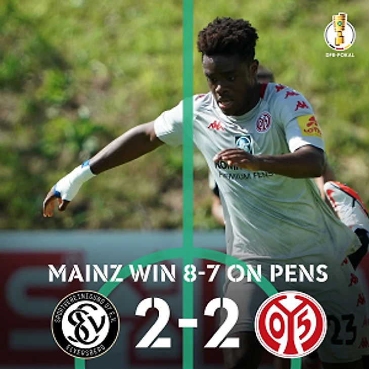 В первом раунде Кубка Германии «Майнц» только по пенальти сумел в гостях обыграть клуб Региональной лиги "Эльверсберг" (2:2, 8:7 по пенальти).