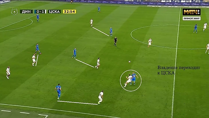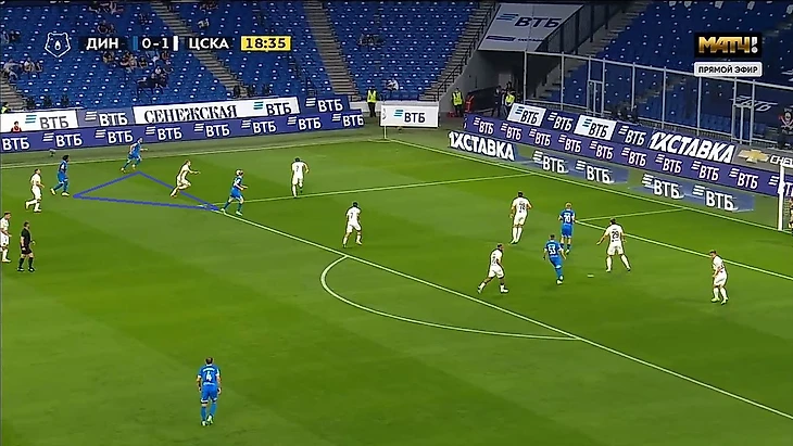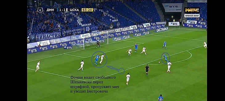 При этом с ЦСКА было две ситуации, когда один из игроков «Динамо» шёл на мяч и пропустил его на свободного партнёра. Особенно запомнился момент на 66-ой минуте - гости потеряли мяч на своей половине, и после паса с фланга Фомин таким образом «передал» его Шиманьски в зону перед штрафной. Это один из элементов, делающих владение «Динамо» сильнее.