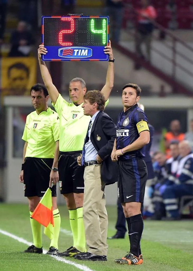 Свою блистательную карьеру футболист завершил в 41 год. Прощальный матч на «Джузеппе Меацца» получился очень трогательным для Хавьера. Он вышел на замену и сразу одел особую капитанскую повязку, на которой были указаны имена всех игроков, с которыми ему довелось играть за «Интер». После матча его ещё долго провожали аплодисментами, которые он заслужил своим трудолюбием и преданностью миланскому клубу.