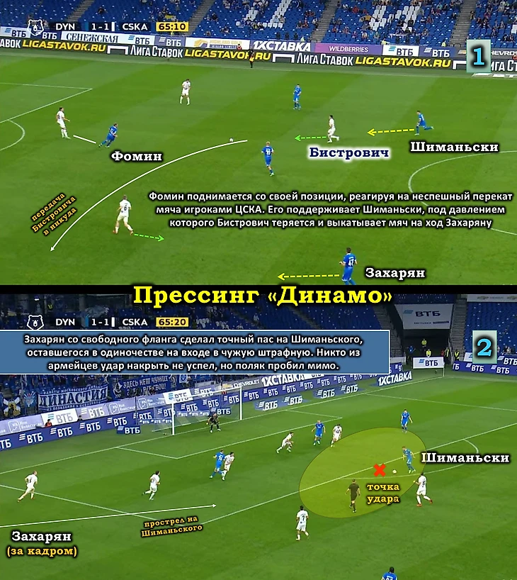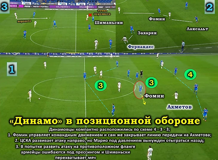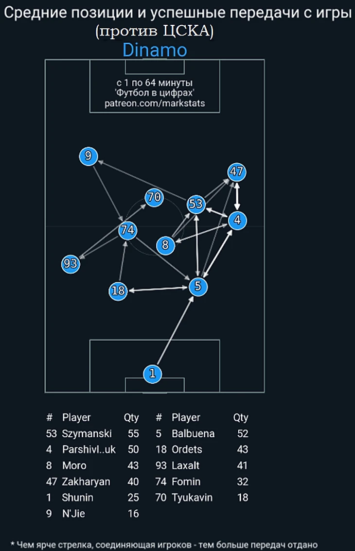 Такая информация, конечно, лучше воспринимается визуально (пример по матчу с ЦСКА — ниже). И, кажется, что "Динамо" действительно всё больше адаптируется к футболу Шварца и командно выглядит сильнее самого себя образца прошлого сезона. Особенно — в игре без мяча.