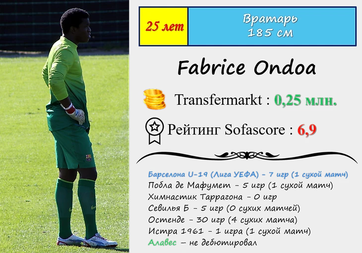 "Барселона Б" оказалась непосильной задачей для камерунского вратаря - 1 игра за 2 сезона. Конечно, иногда Ондоа не попадал в заявку, т.к. вызывался в сборную, но это в совокупности всего-то 7 матчей. За 2 сезона - это капля в море. И пошли, как это обычно бывает, трансферы по командам вторых-третьих лиг: Побла, Настик, дубль Севильи. Казалось, что есть шанс заиграть у андалусийцев, но 5 игр за 2 сезона - это прямо-таки совсем плохо. Удивительно, но бельгийский "Остенде" отдал за резервного вратаря Севильи Б аж 0,7 млн. Команда хоть и из Эерсте Классе А, но постоянно болталась у самого края зоны вылета. И поначалу Ондоа был хоть и не первым вратарём, но основной обоймы, однако позже утратил этот статус. И зимой ушёл свободным агентом в "Алавес", который тут же отправил его в аренду в хорватскую "Истру 1961". Там он по привычной для себе схеме отыграл 1 поединок и вернулся в "Алавес". С басками у Ондоа контракт до 2024 года, но перспективы не ясны. Слабо верится, что Фабрису есть на что надеяться в клубе Ла Лиги. Либо будет в статусе второго или третьего вратаря, либо опять менять прописку.