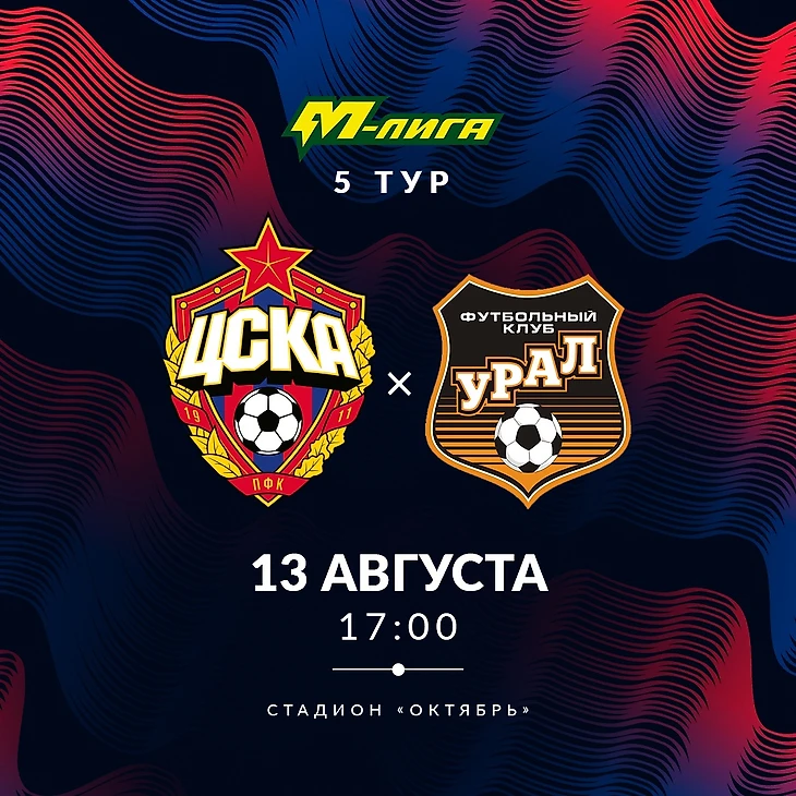 13 августа на стадионе «Октябрь» состоится матч 5-го тура молодежной лиги. ПФК ЦСКА примет «Урал». Начало встречи в 17:00.