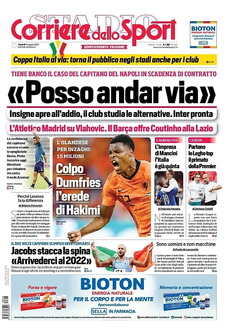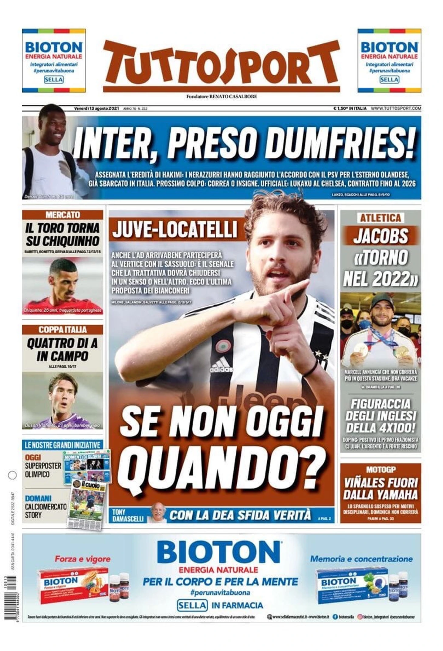 Подписание «Интером» Думфриса, переговоры «Юве» по Локателли, объявление Инсинье о возможном уходе, а также старт Кубка Италии – в утреннем обзоре заголовков итальянских спортивных изданий в блоге «В гостях у Кальчо».