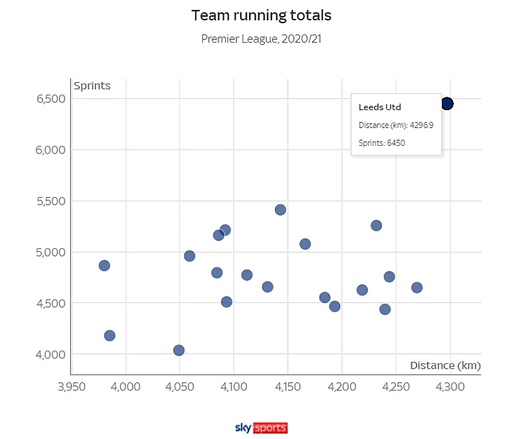 Все это требует огромных усилий. В прошлом сезоне "Лидс" пробежал больше, чем любая другая команда Премьер-лиги, заняв 1-е место по количеству спринтов. Их интенсивность, которая была присуща команде от начала и до самого конца сезона, является одной из главных составляющей футбола Бьелсы.