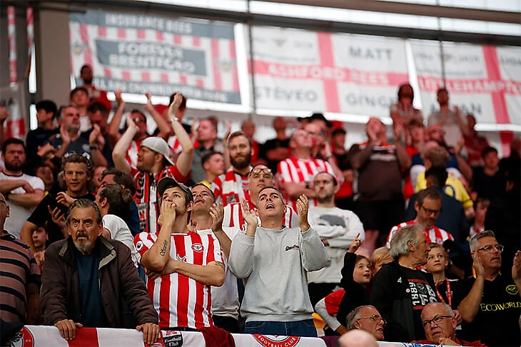 Эти парни искренне рады: их команда победила фаворита 2:0, забив по голу в первом и втором таймах. Пока больше никто не играл, и целый вечер «Брентфорд» будет на первом месте. Такого в высшем дивизионе с клубом не было почти 75 лет – с 1 сентября 1946-го.