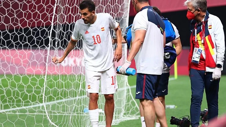 Все началось с дебютного матча Испании против Египта. Себальос получил удар по ногам от соперника и был заменен до перерыва. После этого ему потребовалось четыре дня и поездка по маршруту Саппоро-Токио, чтобы пройти окончательные тесты. У него было диагностировано растяжение связок второй степени, но игрок, с согласия федерации, остался, чтобы попытаться вернуться в полуфинале или финале, что оказалось невозможным. Мало того, он тренировался с группой в течение нескольких дней, что, по мнению мадридского «Реала», приведет к тому, что его восстановление займет на несколько недель больше, чем ожидалось.
