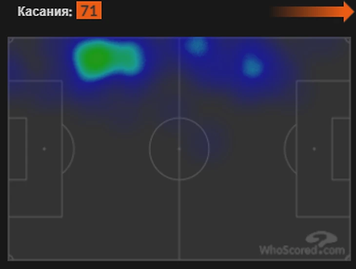 Руй Витория опять изменил схему. Как отмечал сам португалец – Рассказов смещался к центру защиты и периодически играл третьего центрального защитника. Николай практически не подключался к атаке. То же самое можно сказать и про Лукаса. Айртон провёл матч на своей половине поля и не выходил за её пределы, о чём говорит тепловая карта игрока.