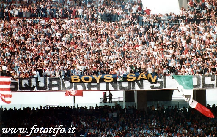 «Верона». Эта дружба родилась аж в 1985 году, считалось, что она настолько крепкая и душевная, как и отношения с «Лацио»: в сезоне 90/91 «Boys SAN» на еврокубковых матчах позволяли своим веронским друзьям вешать знамя «Brigate Gialloblu» выше своего. Основные мотивы для дружбы все те же: ненависть к «Ювентусу», «Милану», ультраправые взгляды, союз с «Фиорентиной» и «Сапдорией». Дружба со временем усилилась из-за войны веронцев с Неаполем (которые дружили с «миланистами» вплоть до 1988 года) и плохих результатов «Милана» на Маркантонио Бентегоди (домашней арене «Вероны»), из-за этого команду прозвали «Роковая Верона», а также из-за дружбы ультрас «джаллоблу» на основе общих политических взглядов с тифози «Лацио». Казалось, что это рождение мощнейшего союза трех («Интер» - «Лацио» - «Верона»), но отношения начали портиться между двумя тифозериями и к началу 00-х привели к сильнейшей вражде.
