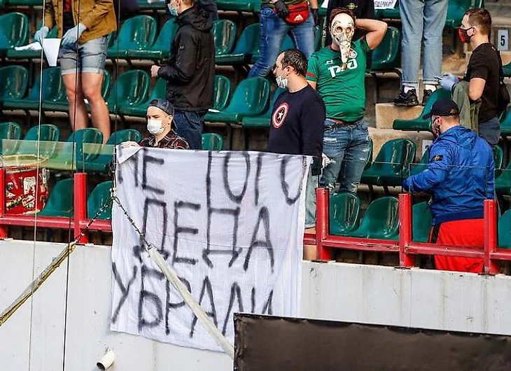 Необходимо также отметить баннер, посвященный отставке Юрия Семина.