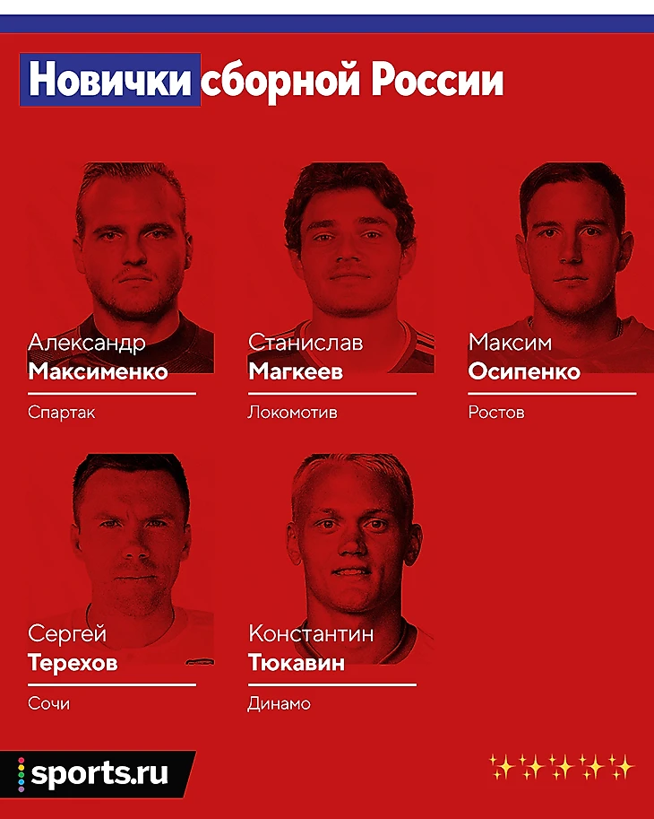 Среди выбранных Карпиным – Арсен Захарян, Александр Максименко, Константин Тюкавин, защитник «Сочи» Сергей Терехов и Максим Осипенко из «Ростова».