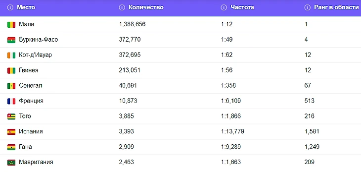 По данным генеалогического портала Forebears, фамилию Traore (219-я по распространенности в мире) и Traoré носят в сумме около 2,5 млн человек. Больше всего Траоре можно встретить в Мали — там это самая популярная фамилия, ее носит каждый 12-й малиец. В Буркина-Фасо и Кот-д’Ивуаре, откуда оба наших героя, Траоре почти одинаковое количество (по 370 тысяч).