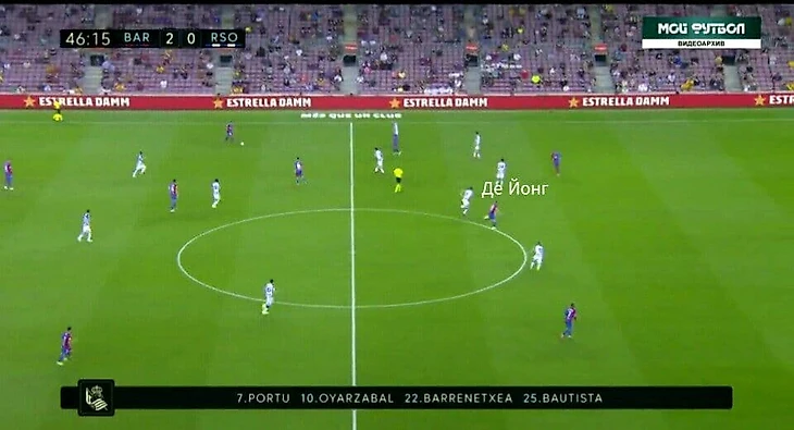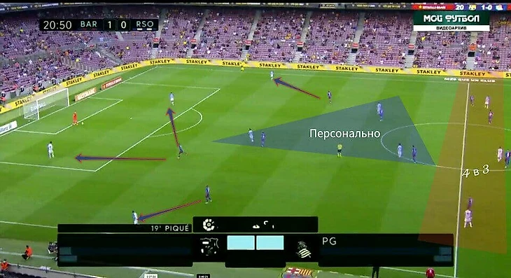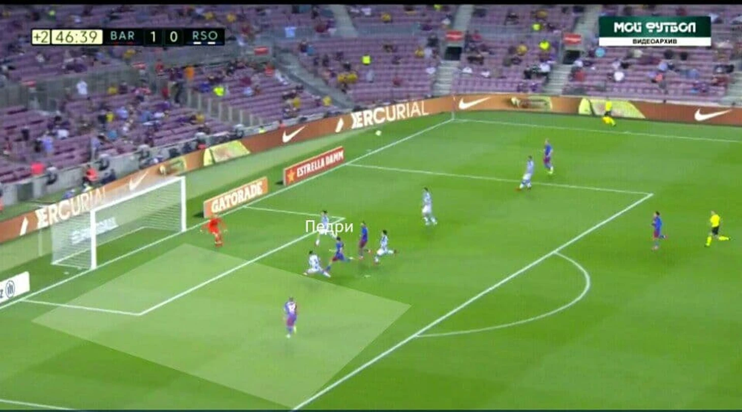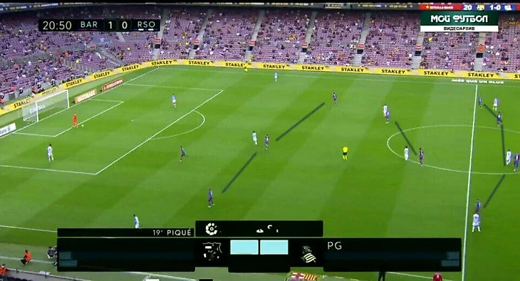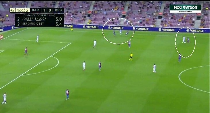 Второй гол Барсы пришёл как раз таки после удачного прессинга и отбора на чужой половине поля. Гризманн и Дест прессинговали крайнего защитника Реала Сосьедада, а Гарсия - удачно отобрал мяч у соперника :