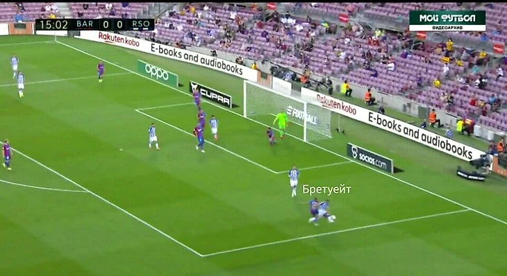 А на другом фланге Брейтуэйт тоже добегал до своего соперника - правого защитника Реала Сосьедада и не давал ему свободы: