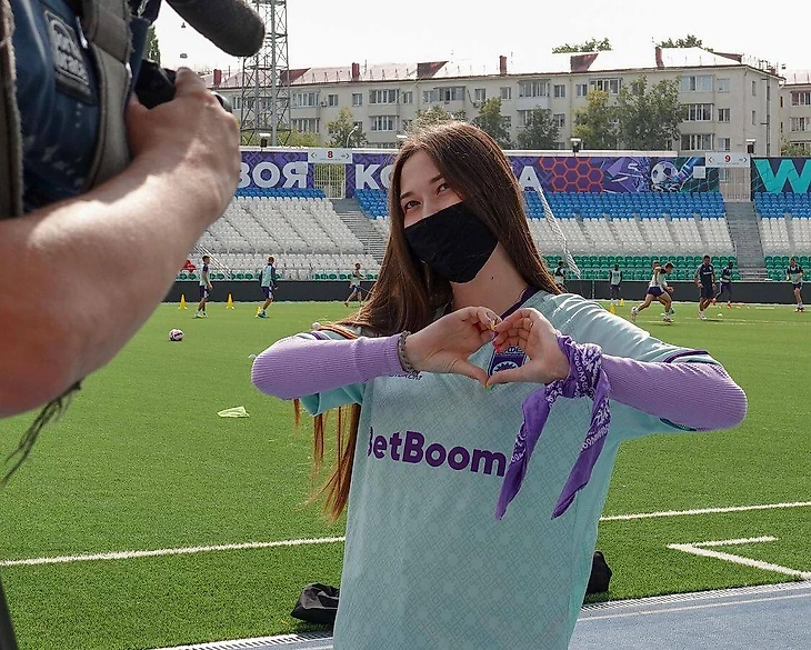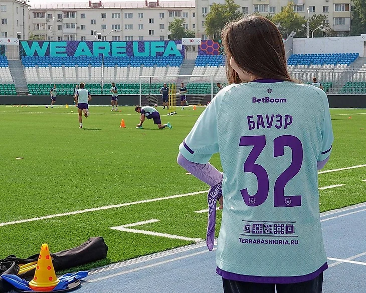 И вы не поверите, но в «Уфе» нашли эту фанатку. Девушку зовут Азалия. Ее пригласили на тренировку команды, где Моритц Бауэр торжественно вручил ей футболку.