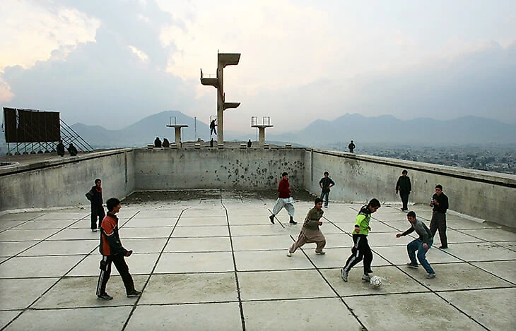 Ноябрь 2006 года. Футбол в старом бассейне на вершине холма с видом на Кабул.