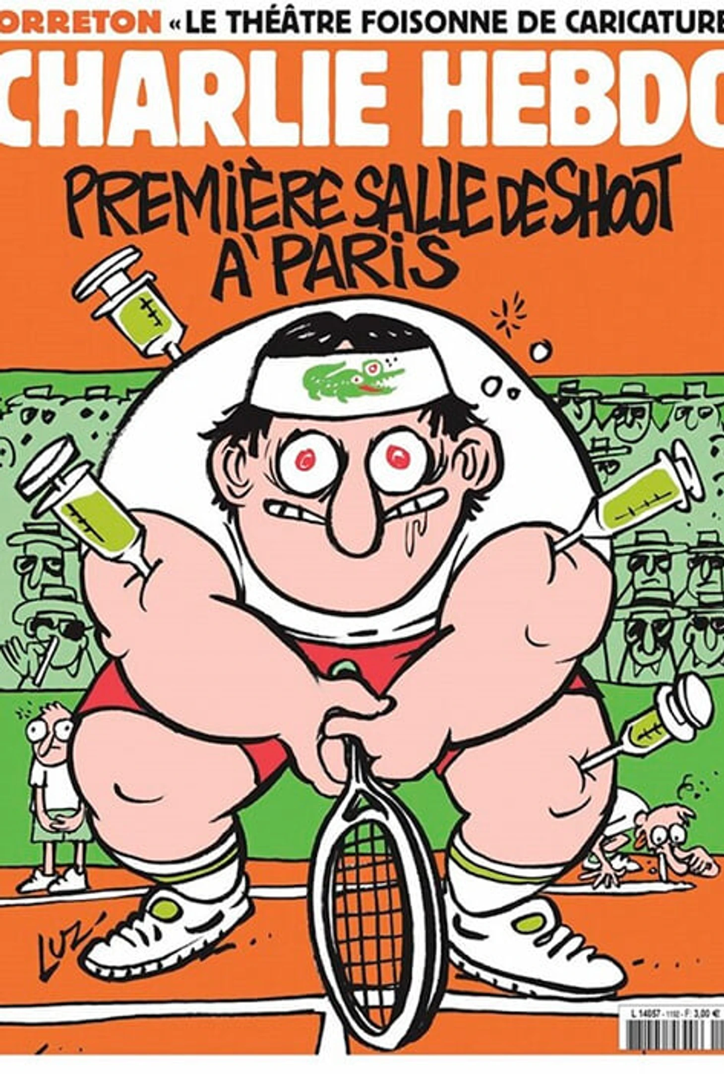 А здесь намек на то, что теннис нечист. На обложке нашли сходство с Рафаэлем Надалем, а на заднем плане предположительно Ришар Гаске, обвиненный в то время в употреблении кокаина.
