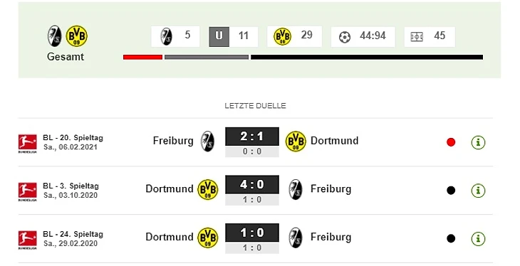 В первом туре "Боруссии" потребовалось 12 ударов для пяти забитых мячей. Ни одна из 14 попыток футболистов "Фрайбурга" не оказалась результативной
