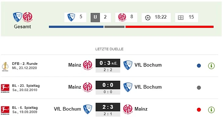 "Майнц" не проигрывает в гостях уже восемь игр кряду. Но "Бохум" в минувшем сезоне во Второй Бундеслиге довольно сильно играл дома (12 побед, 2 ничьих, 3 поражения)