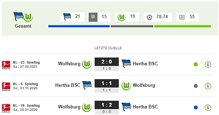 "Вольфсбург" проиграл лишь в одном из восьми предыдущих матчей с "Гертой". Четыре последних визита в Берлин для "волков" оборачивались набранными очками
