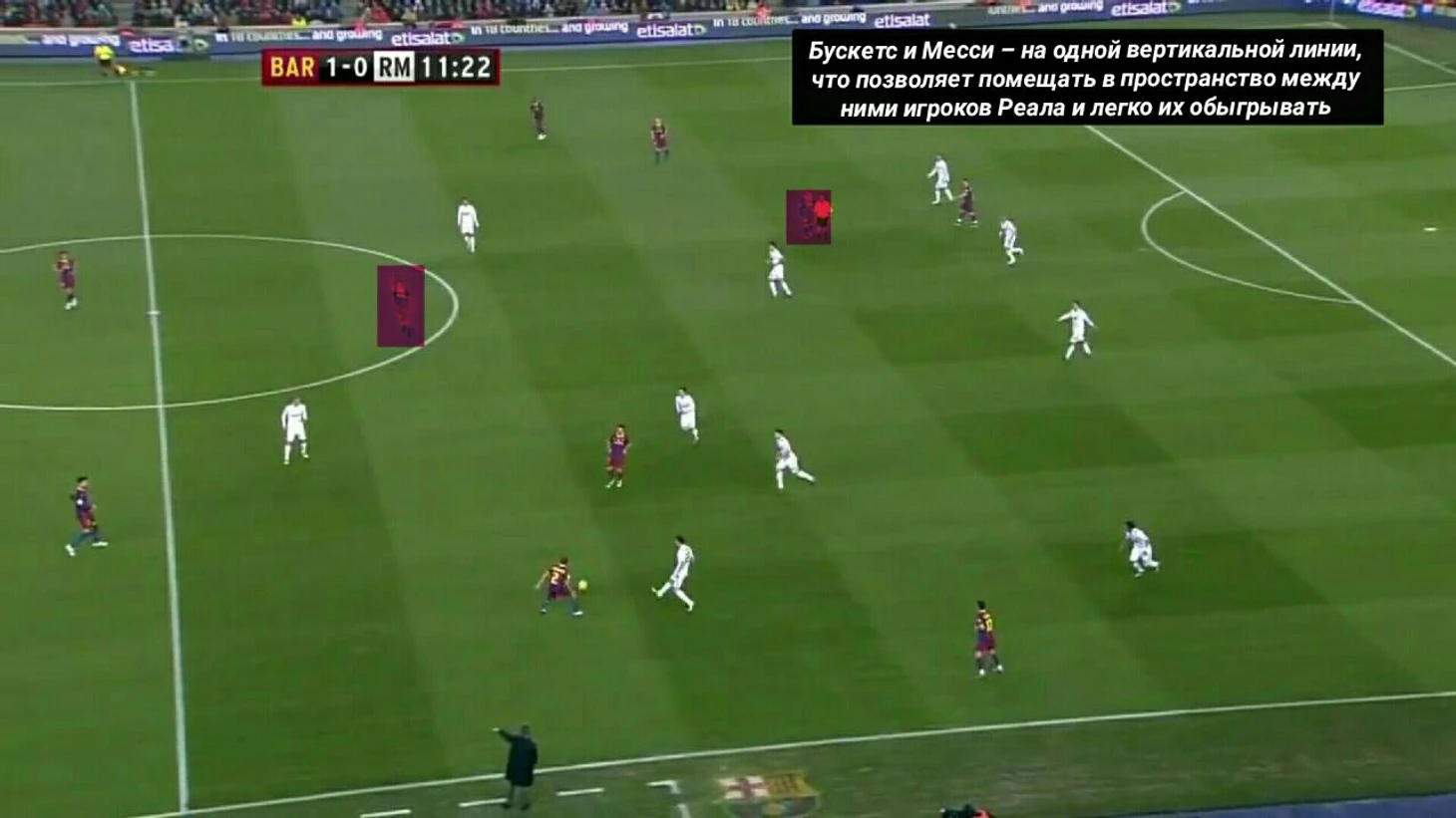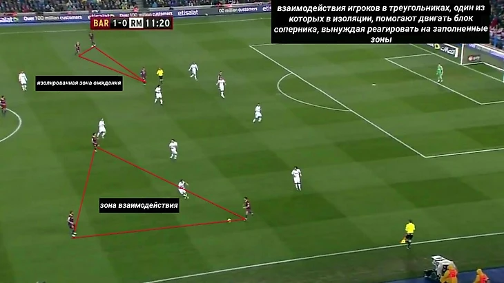 – Создавать изоляции за спинами опорников соперника (чаще всего для Месси или Иньесты)
