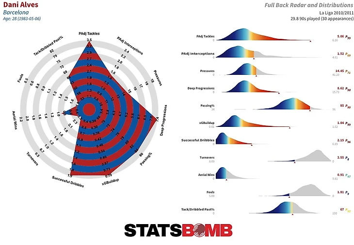 – Дани Алвес делал в среднем 77 передач за игру, что является впечатляющим показателем для защитника