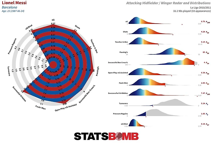 Далее рассмотрим радар Лео Месси за тот сезон:
