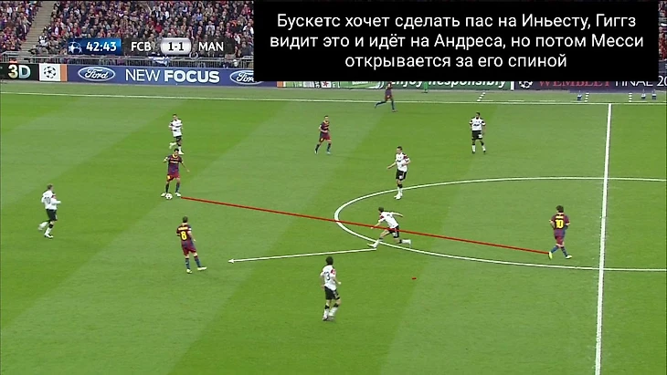 Бускетс - человек, который как никто другой умеет находить возможности для передач между линиями, при этом манипулируя соперником с помощью движения своего тела:
