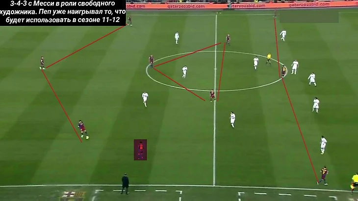 Альберт Морен (автор книги «Футбол после Пепа) считает, что в финале Лиги чемпионов 11-го года на Уэмбли, «Барселона» играла по схеме, которая использовалась в следующем сезоне, а именно 3-4-3.