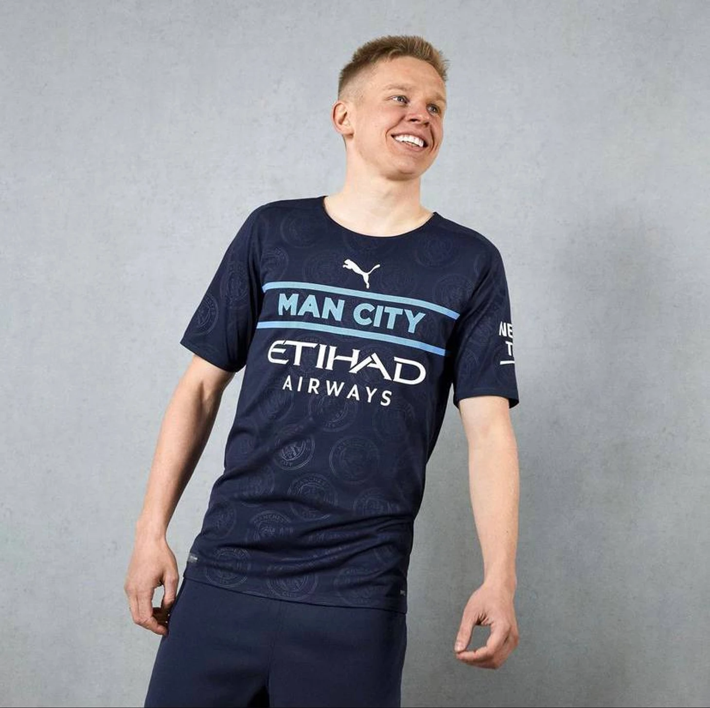 Саша Зинченко улыбается, показывая новый комплект «Ман Сити». Болельщики не так обрадовались и уже запустили хэштег #PumaOut.