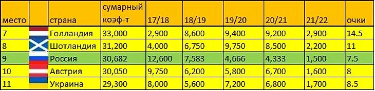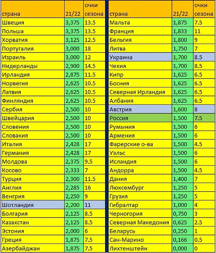 Наши команды в раунде плей-офф участие не принимают, что позволяет конкурентам или приблизится, как Украине и Австрии, либо уйти вперёд, как Шотландии.