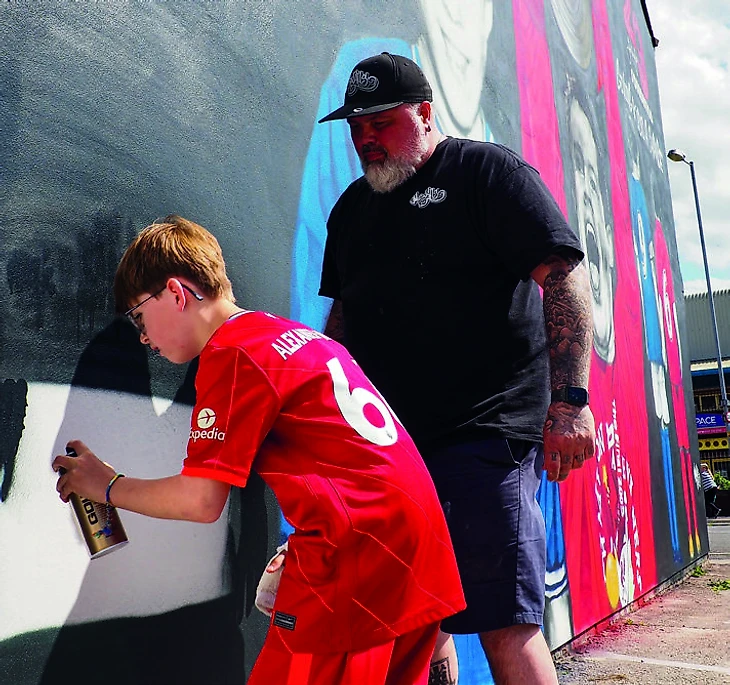 Бюрократия и согласования заняли больше года, но в конце концов, это случилось. Марк вернулся в хмурый город, где родился и пережил так много, чтобы дать ему немного улыбки. Он работал 15 часов подряд, потратив почти 40 банок краски. Мураль была открыта перед матчем первого тура с Астон Виллой.