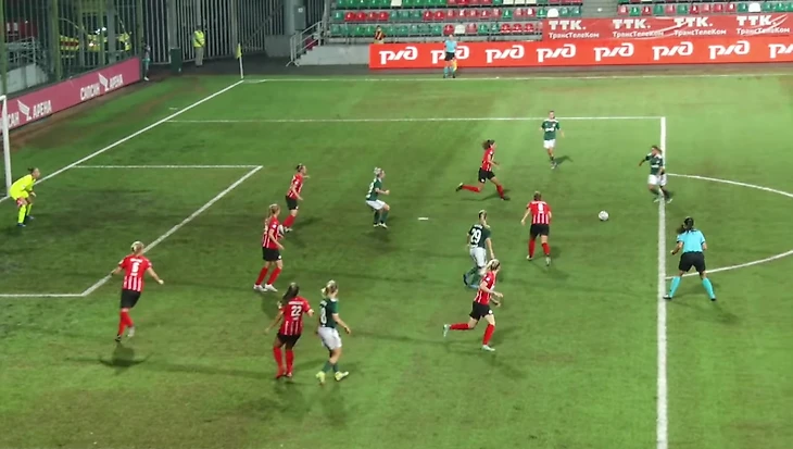 Рузина ворвалась в штрафную вторым темпом - после того, как Марина Федорова (по совместительству главный дриблер и “технарь” нашего чемпионата и нашей сборной) собрала на себе нескольких соперниц и прострелила вдоль ворот: