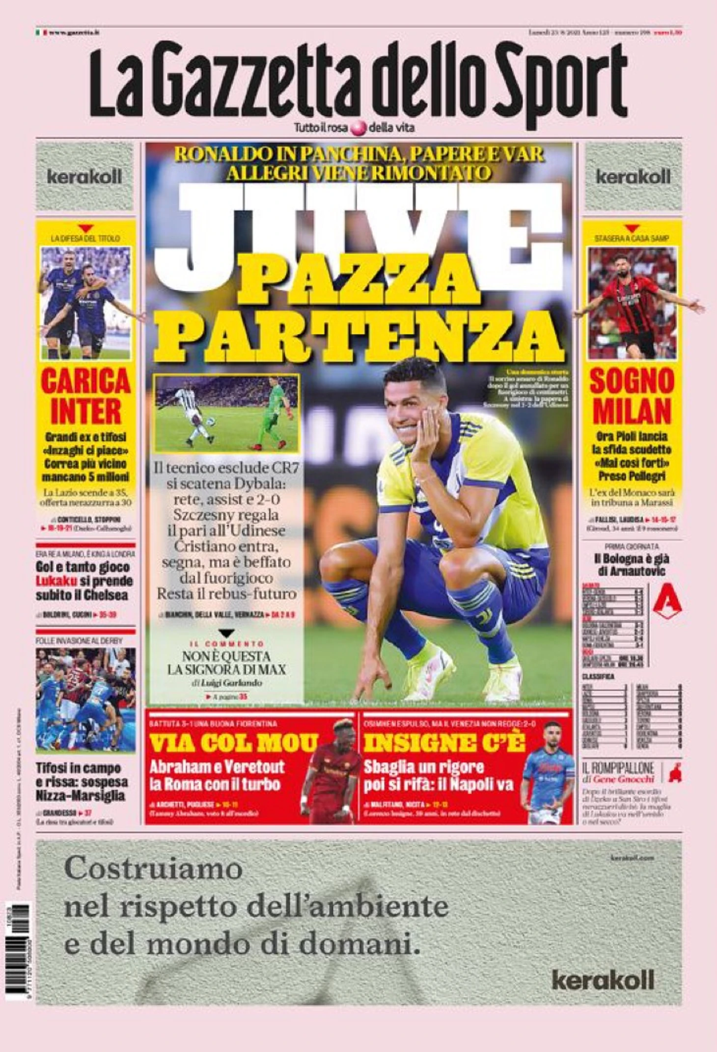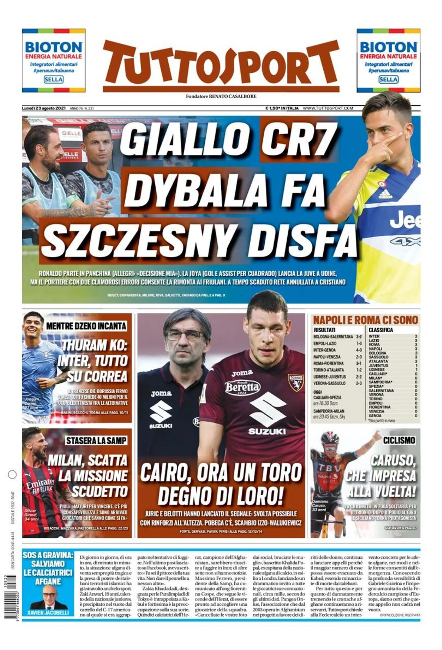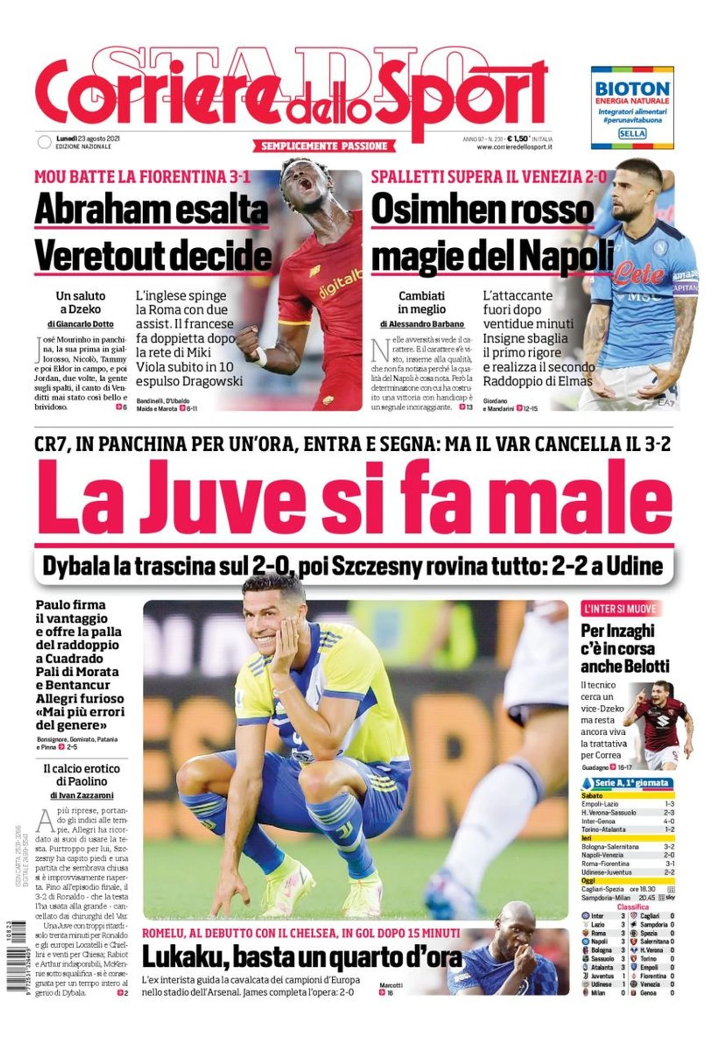 «Юве» делает плохо. Заголовки Gazzetta, TuttoSport и Corriere за 23 августа