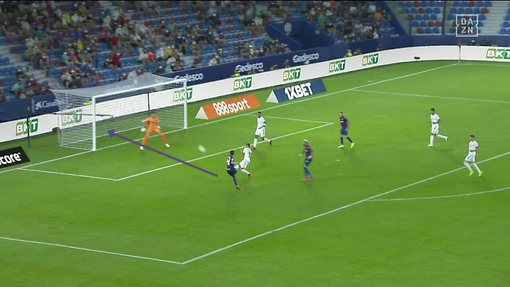 Второй гол Леванте тоже был прекрасным. Треугольник и комбинация на фланге, точная подача, численное преимущество в штрафной и сам гол. Смотрите: