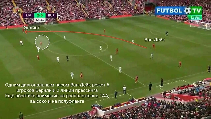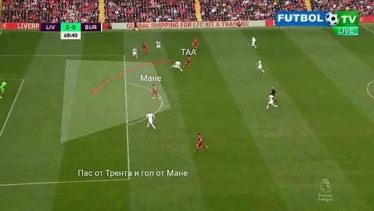 И в матче Ливерпуль-Бёрнли оба ассиста пришли с полуфлангов. Первая - подача Цимикаса, вторая - пас Трента Александер-Арнольда. Разберём второй гол Ливерпуля: