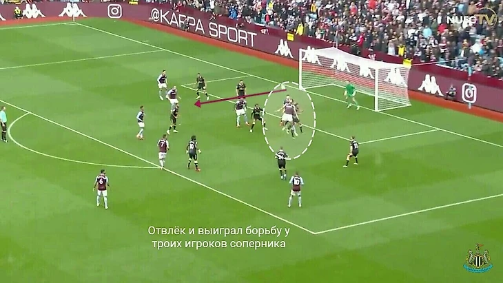 Дальний бросок, выигрыш в верховой борьбе у трёх игроков соперника, удар через себя и гол... Красиво!