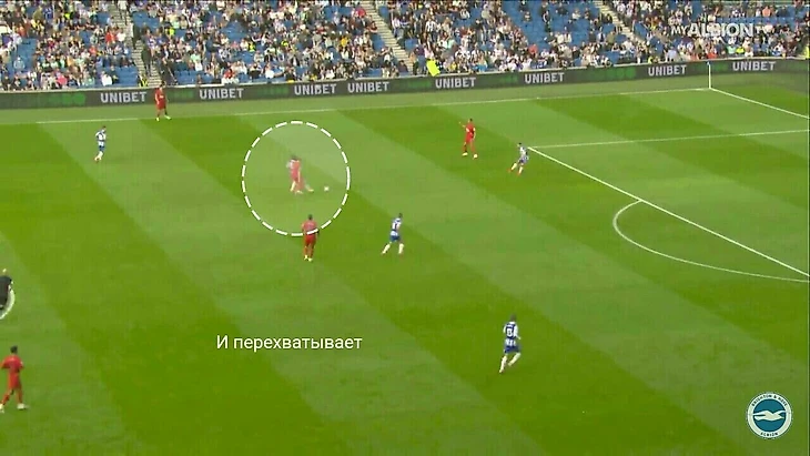 Так вот, Брайтон уловил момент в прессинге и воспользовался ошибкой соперника.