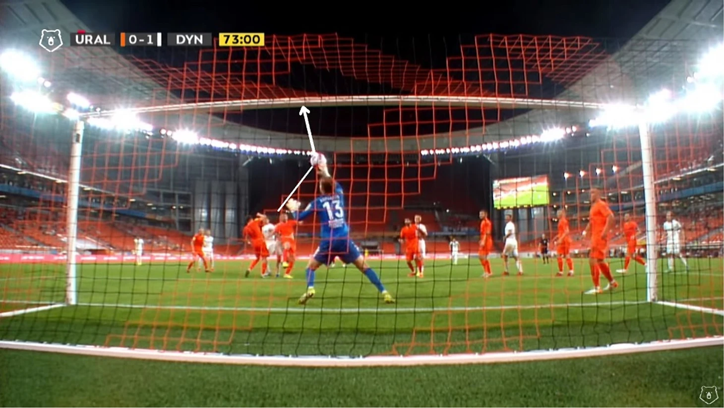 Через семь минут Дмитрий подстраховывает Лаксальта, обыгранного Гаджимурадовым, переведя мяч на угловой, который не принёс никаких дивидендов Уралу. А вот Динамо снова убежало в опасную контратаку, но к сожалению подуставший Захарян не смог точно отпасовать или на Грулёва или на Скопинцева. Был ещё и вариант перекинуть мяч на Шиманьски.
