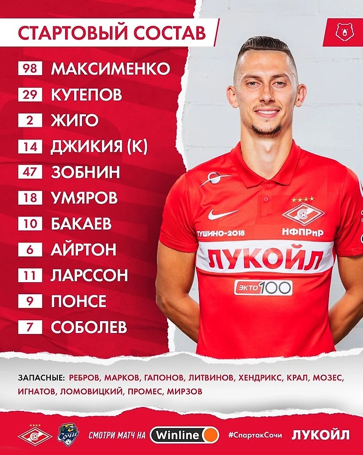 Состав «Спартака» в матче с «Сочи»